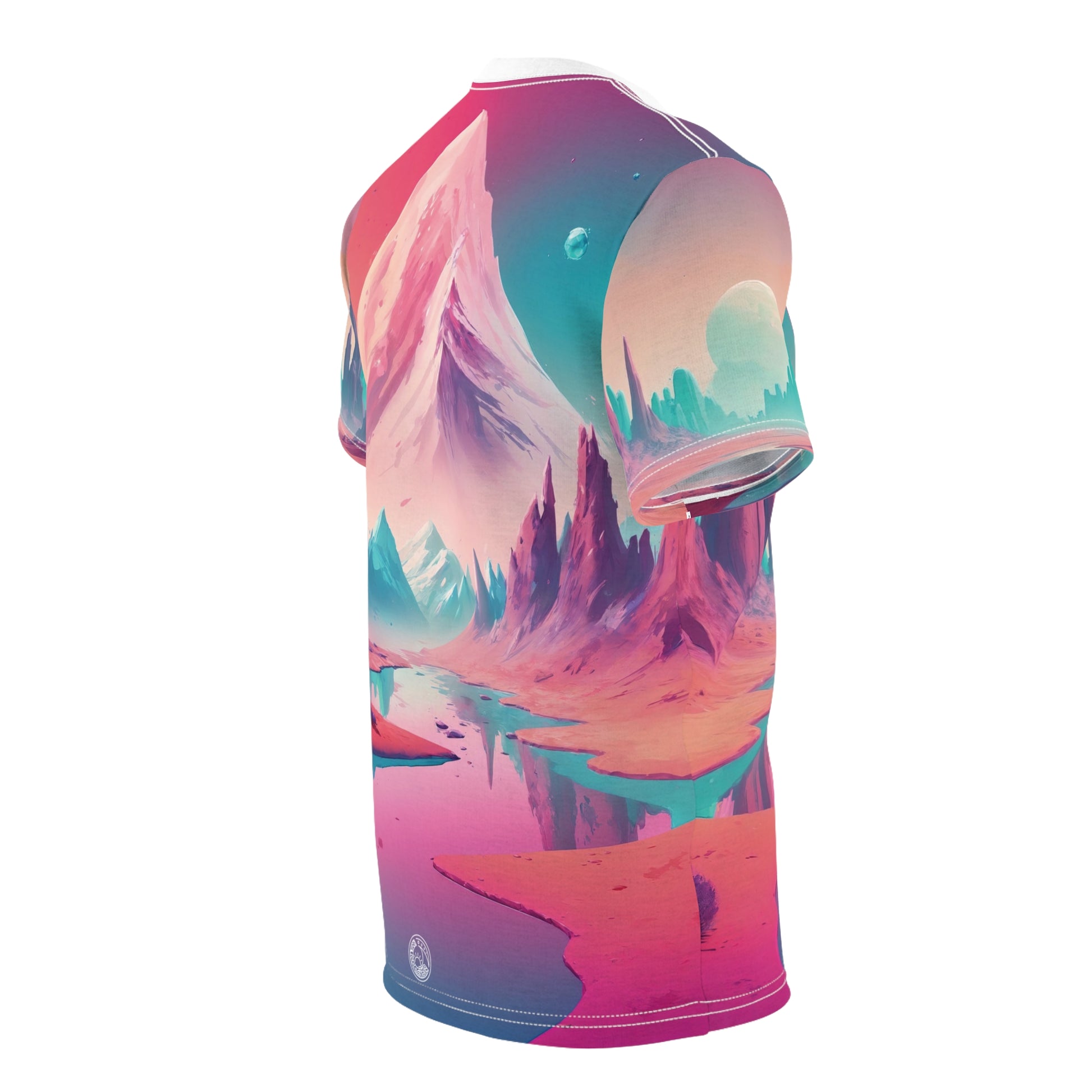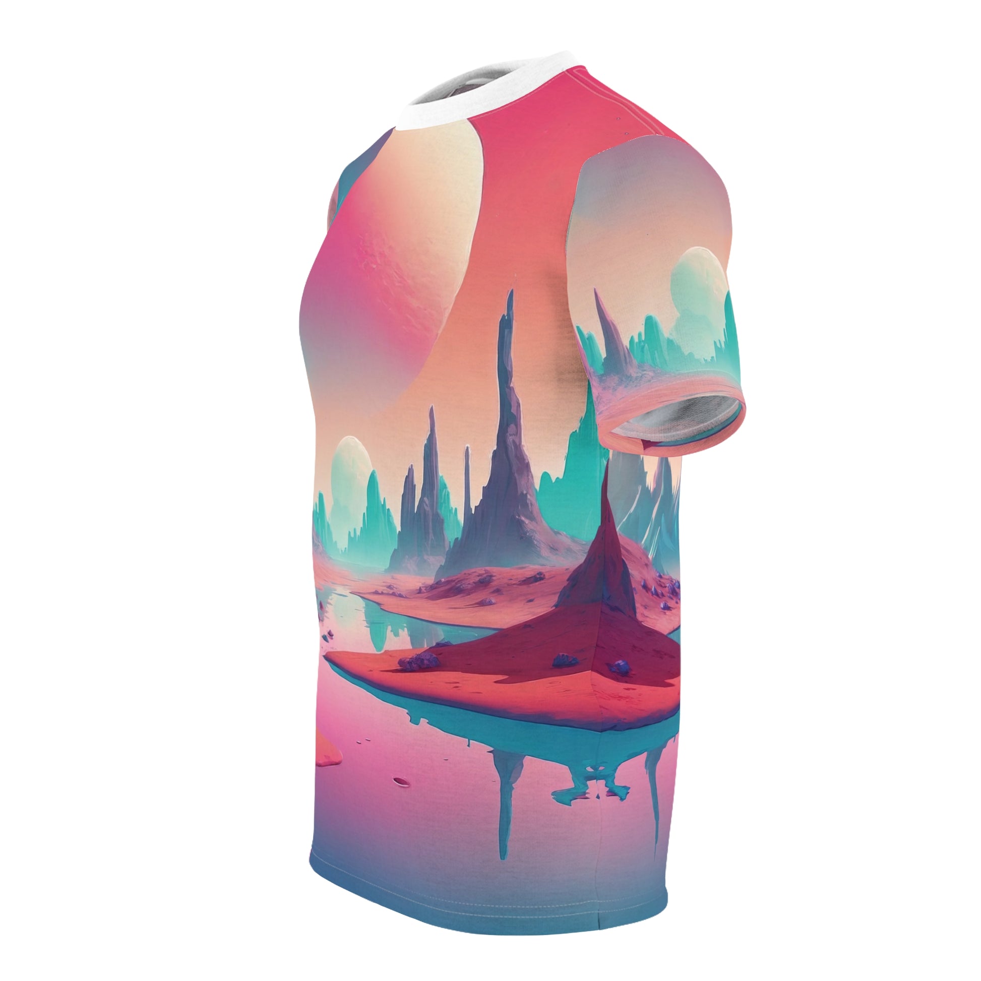 Step into a waking dream with Mirage, a vision from a world that exists somewhere between memory and imagination. Fading dunes, distant waves, and soft celestial shapes drift through a haze of warm tones — terracotta, golden sand, and sky-washed blues. This design isn’t just a print, it’s a feeling: quiet, surreal, and untethered from reality. Wear it when you want to wander without moving.
