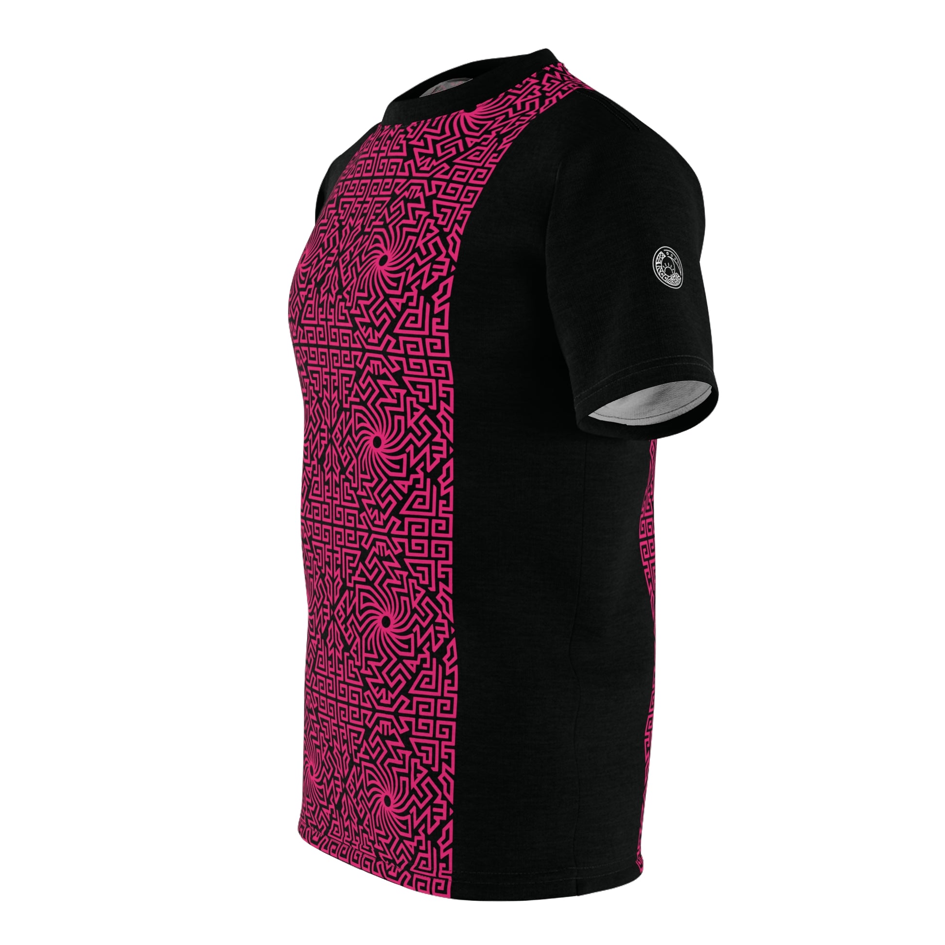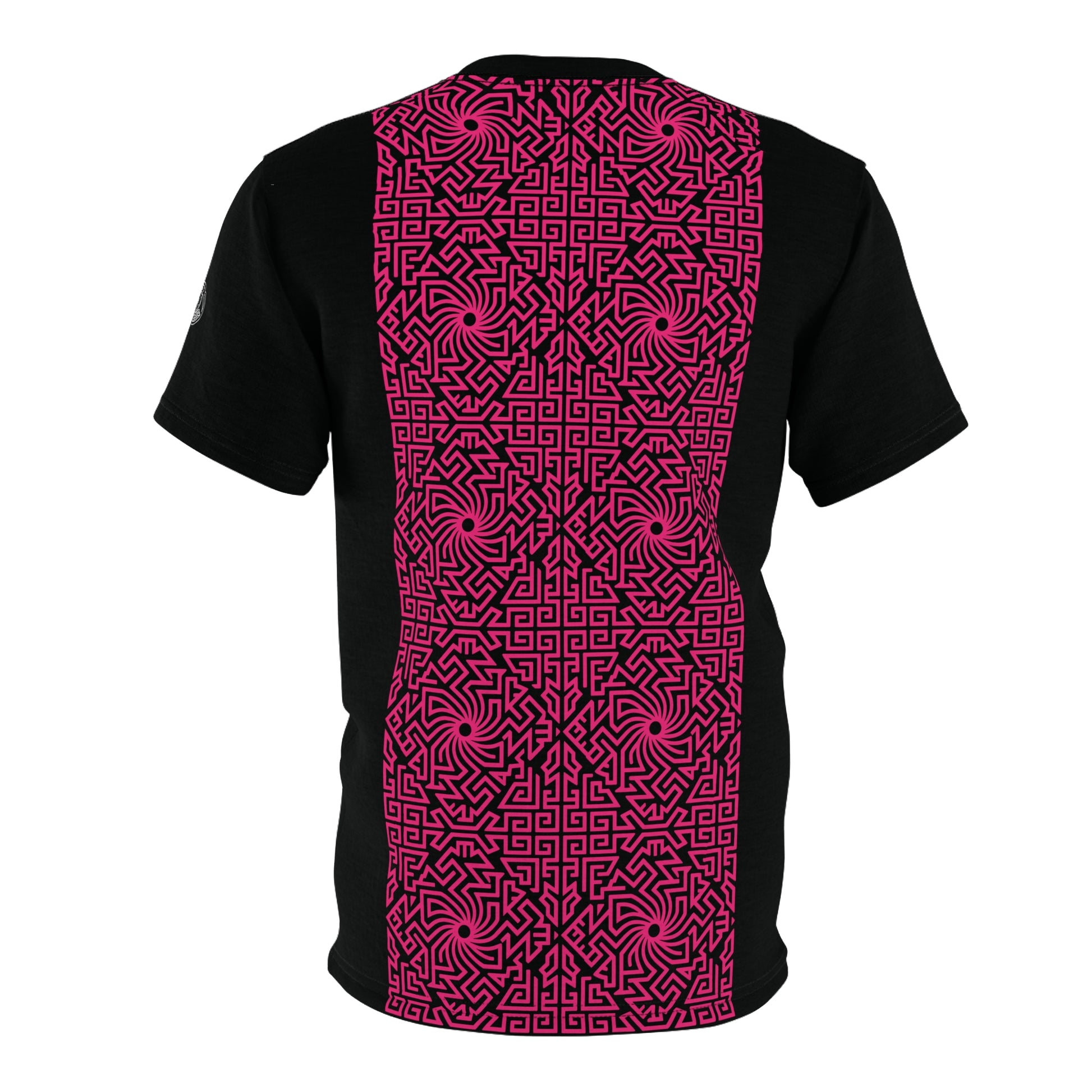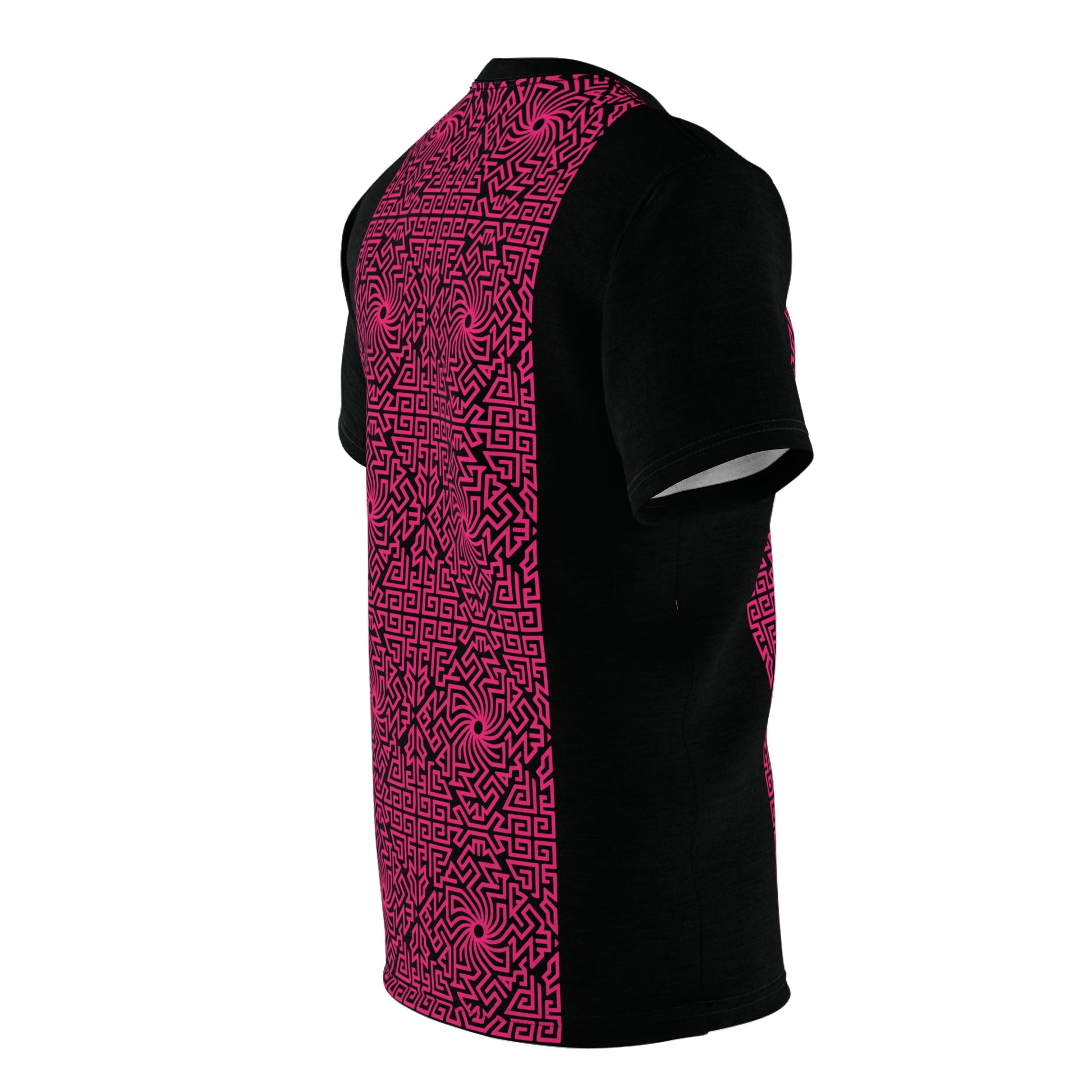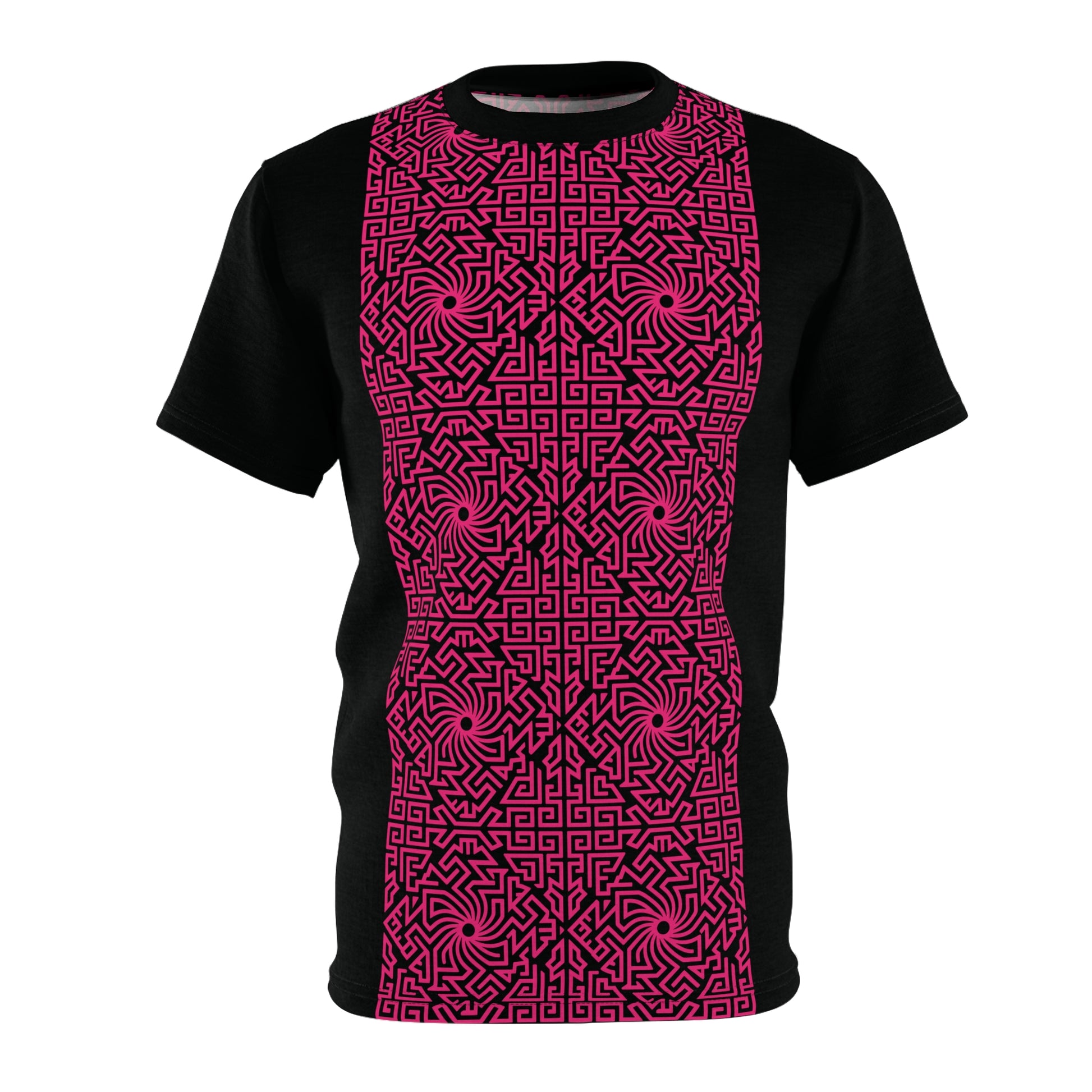 Printed in vibrant magenta on deep black, this piece is a reflection of intuitive vision and energy in motion. A modern expression of sacred geometry and timeless cultural rhythm.
